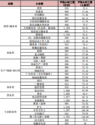 日本打工时薪